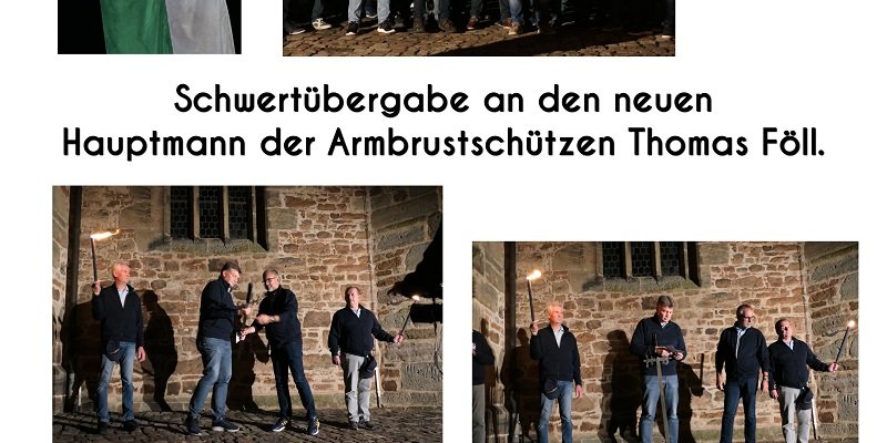 Im September 2021 fand die feierliche Schwertübergabe an den neuen Hauptmann der Armbrustschützen statt.